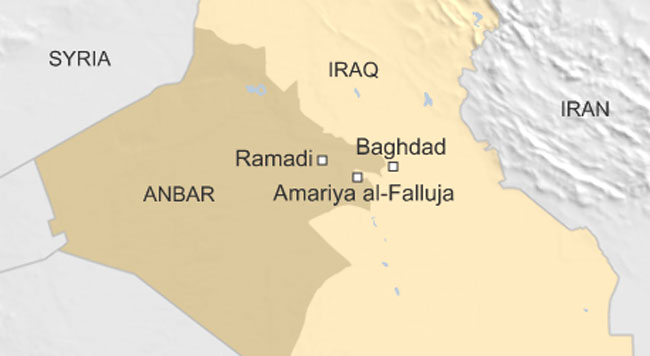Το μεγαλύτερο μέρος της επαρχίας Ανμπάρ στο δυτικό Ιράκ έχει πέσει στα χέρια των τζιχαντιστών του ΙΧΙΛ. Η επαρχία αυτή έχει τεράστια στρατηγική σημασία για την ιρακινή κυβέρνηση, διότι εκεί βρίσκονται οι πόλεις Φαλούτζα, Χιτ και Κουμπαΐσα, μέσα από τις οποίες περνά ο κεντρικός διάδρομος που οδηγεί από τη Συρία στη Βαγδάτη. Όμως ήδη οι τρεις αυτές πόλεις βρίσκονται υπό τον έλεγχο των τζιχαντιστών, οι οποίοι βρίσκονται μόλις 20 χιλιόμετρα από το αεροδρόμιο της Βαγδάτης.