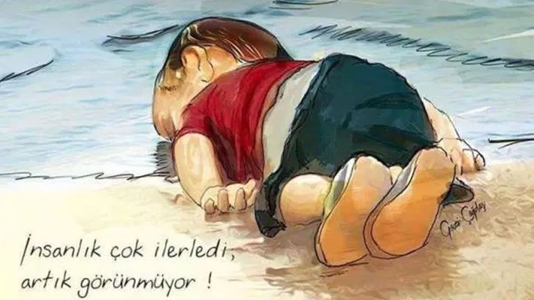 Στις 2 Σεπτεμβρίου 2015, το μικροσκοπικό σώμα του τρίχρονου Αϊλάν ξεβράστηκε άψυχο σε μια παραλία των τουρκικών κοντά στο Μπόντρουμ (Αλικαρνασσός). Ο μικρός πνίγηκε σε ναυάγιο στο Αιγαίο μαζί με τον αδελφό του Γκαλίπ, την μητέρα του Ρεχάνα και εννέα ακόμη πρόσφυγες.