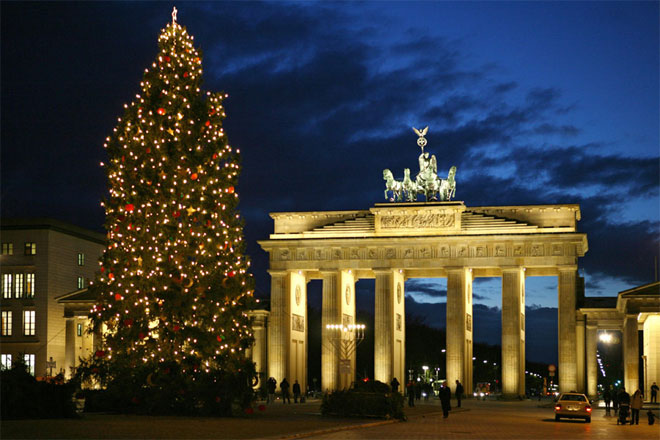 Η μεγαλοπρεπής πύλη του Βρανδεμβούργου δεν θα μπορούσε παρά να στολιστεί με ένα εξίσου μεγαλοπρεπές χριστουγεννιάτικο δέντρο.