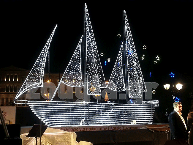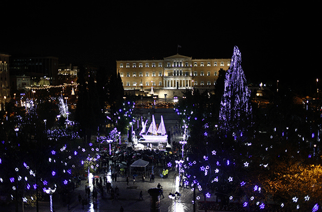 Η Αθήνα ξεκίνησε τις εορταστικές εκδηλώσεις στις 3 Δεκεμβρίου και η έναρξή τους κορυφώθηκε στις 10 του μήνα, όταν ο δήμαρχος Αθηναίων Γιώργος Καμίνης έδωσε το σήμα για τη φωταγώγηση της πλατείας Συντάγματος. Αυτή τη χρονιά το κέντρο της μεγαλύτερης πλατείας της χώρας το κοσμεί ένα λιτό μικρό καράβι.