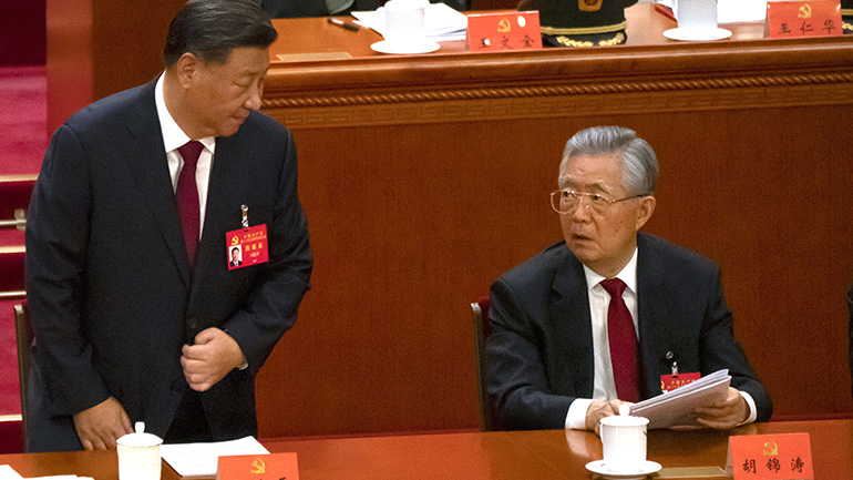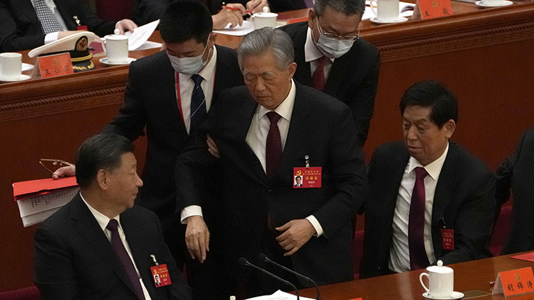Μια παράξενη σκηνή εκτυλίχθηκε σήμερα στην τελετή λήξης του 20ου Συνεδρίου του Κομμουνιστικού Κόμματος Κίνας. Ο πρώην πρόεδρος Χου Τζιντάο οδηγήθηκε συνοδευόμενος στην έξοδο, εμφανώς παρά τη θέλησή του, όπως διαπίστωσαν οι δημοσιογράφοι του Γαλλικού Πρακτορείου.