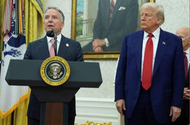 Ο ειδικός απεσταλμένος του Λευκού Οίκου, Στιβ Γουίτκοφ και ο Πρόεδρος Ντόναλντ Τραμπ στον Λευκό Οίκο, Τετάρτη, 28/5. Φωτογραφία: EvanVucci/AP