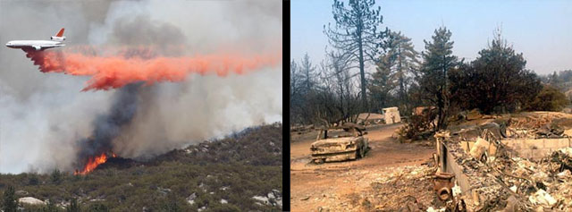 Μέχρι στιγμής περισσότερα από 90.000 στρέμματα δασικής έκτασης έχουν γίνει στάχτη. Στο έργο της κατάσβεσης έχουν ενεργοποιηθεί σχεδόν 3.000 πυροσβέστες (2.985), οι οποίοι υποστηρίζονται από 228 οχήματα, 21 αεροπλάνα, 17 ελικόπτερα και 15 μπουλντόζες. Το μέτωπο της φωτιάς βρίσκεται στον Εθνικό Δρυμό του Σαν Μπερναντίνο, με τις φλόγες να απειλούν περίπου 4.100 κατοικίες και εκατοντάδες εμπορικές επιχειρήσεις.