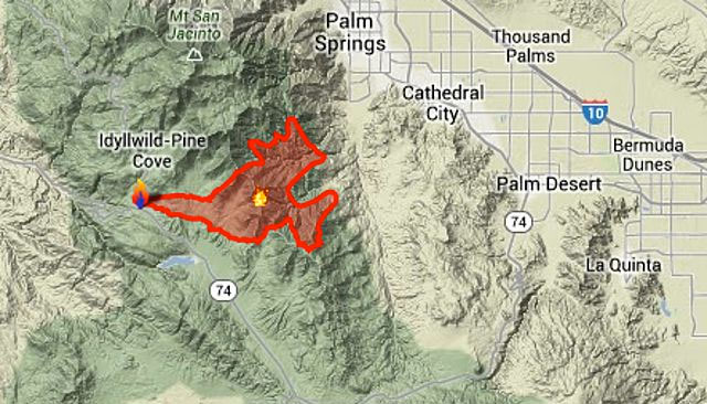 Το Παλμ Σπρινγκς απέχει περίπου δύο ώρες από το Λος Άντζελες. Οι πρώτες εστίες ξεκίνησαν τη Δευτέρα, ενώ τις τελευταίες ημέρες ο υδράργυρος βρίσκεται σταθερά πάνω από τους 40 βαθμούς Κελσίου. Οι αλλαγές στη φορά του ανέμου έχουν προκαλέσει σοβαρά προβλήματα στους πυροσβέστες. Το 2006 πέντε πυροσβέστες είχαν χάσει τη ζωή τους και 34 σπίτια καταστράφηκαν στη διάρκεια μεγάλης φωτιάς που έκαιγε στην περιοχή.
