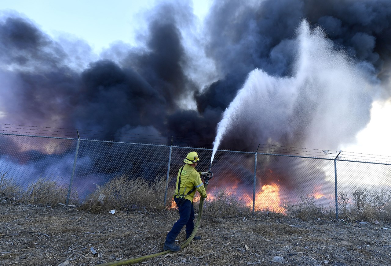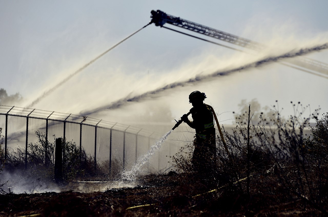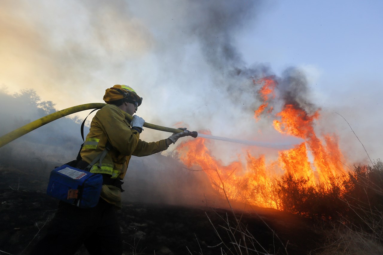 Πυροσβέστες προσπαθούσαν να θέσουν υπό έλεγχο δασική πυρκαγιά που μαινόταν έως αργά το βράδυ της Πέμπτης (τοπική ώρα) νοτιοανατολικά του Λος Άντζελες, περίπου 24 ώρες αφότου ξέσπασε σε δασώδες φαράγγι, και η οποία προφανώς προκλήθηκε από βλάβη σε οικιακή γεννήτρια.