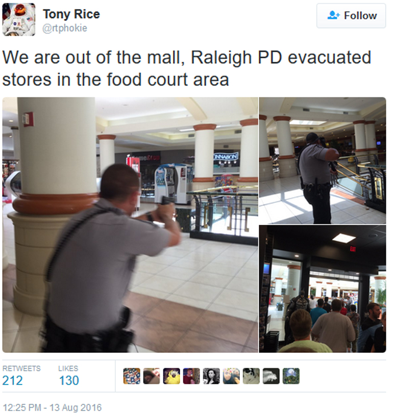 Στο εμπορικό κέντρο Crabtree Valley Mall στη Βόρεια Καρολίνα, ακούστηκαν πυροβολισμοί και όπως επιβεβαίωσε η τοπική αστυνομία, η οποία έχει αποκλείσει το εμπορικό, μέχρι στιγμής δεν έχει συλληφθεί κάποιος ύποπτος.