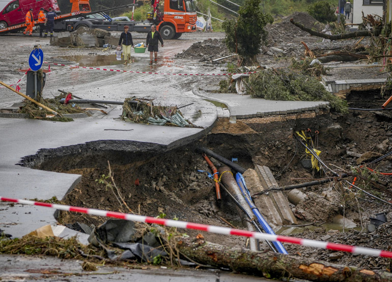 Κοντά στην Κολονία, στο Έρφστατ, ένα μέρος του χωριού κυριολεκτικά κατέρρευσε, μετά την κατολίσθηση που σημειώθηκε σήμερα. Οι εντυπωσιακές εικόνες από την περιοχή δείχνουν έναν τεράστιο κρατήρα, γεμάτο με όγκους χώματος, λάσπη και συντρίμμια. Οι αρχές εκτιμούν ότι πολλοί άνθρωποι έχουν χάσει τη ζωή τους στην κοινότητα αυτήν.