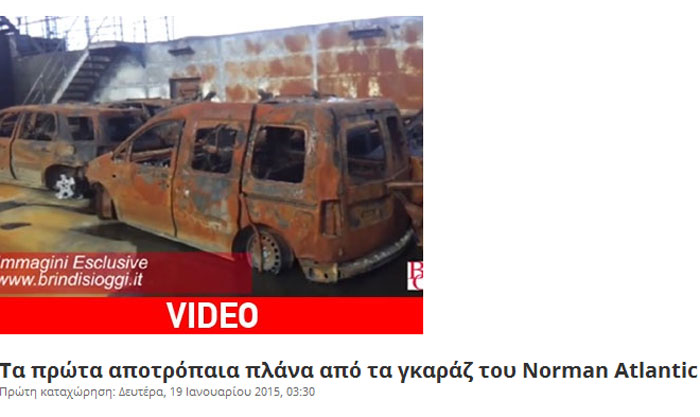 Εικόνες αποκάλυψης μεταδίδουν τα ιταλικά μέσα ενημέρωσης από το Μπάρι της Ιταλίας, όπου παραμένει αγκυροβολημένο το πλοίο «Norman Atlantic», το οποίο τον Δεκέμβριο του 2014 τυλίχθηκε στις φλόγες, παρασύροντας δεκάδες ανθρώπους στον θάνατο.