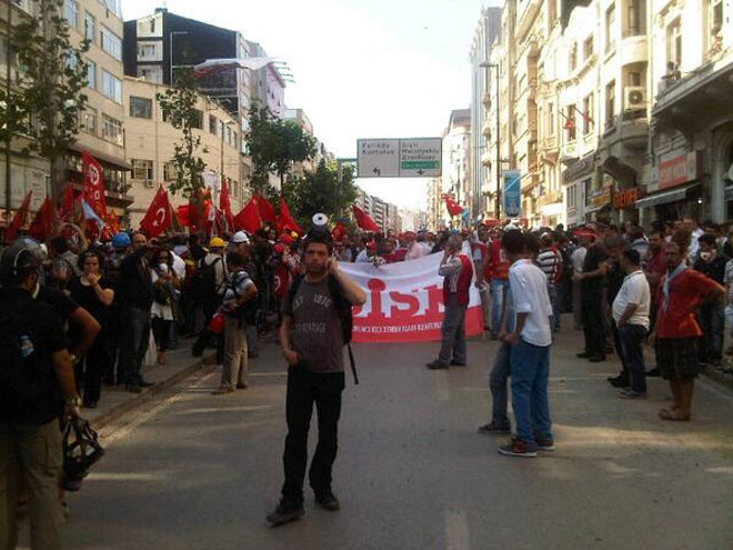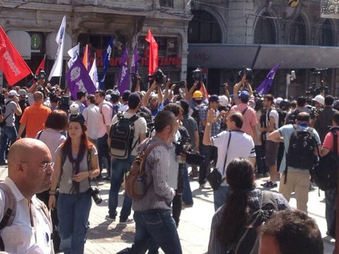 Στην Κωνσταντινούπολη τα δύο συνδικάτα, το DISK και η συνομοσπονδία δημοσίων υπαλλήλων KESK υποστηριζόμενα από τρία άλλα συνδικάτα μηχανικών, οδοντιάτρων και γιατρών, συγκέντρωσαν λιγότερους από 2.000 διαδηλωτές, βόρεια και νότια της πλατείας Ταξίμ. Στην πιο πρόσφατη κινητοποίησή τους στις 5 Ιουνίου, τα δύο συνδικάτα είχαν συγκεντρώσει πολλές δεκάδες χιλιάδες ανθρώπους. Τα δύο συνδικάτα σταμάτησαν την πορεία τους σε κάποια απόσταση από την πλατεία Ταξίμ, η πρόσβαση στην οποία εμποδιζόταν από σημαντική αστυνομική δύναμη.