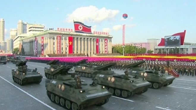 H 70ή επέτειος του Εργατικού Κόμματος έδωσε μια καλή ευκαιρία στον Βορειοκορεάτη ηγέτη να κάνει επίδειξη στρατιωτικής ισχύος, μεταδίδει το BBC, και πολλοί καθηλώθηκαν στις οθόνες τους προκειμένου να διαπιστώσουν πόσο έχει εξελιχθεί ο πολεμικός εξοπλισμός της χώρας. Εξάλλου, όταν προαναγγέλθηκαν οι εορτασμοί, νωρίτερα το 2015, η κυβέρνηση είχε κάνει λόγο για «οπλισμό αιχμής», κατάλληλο για σύγχρονο πόλεμο.