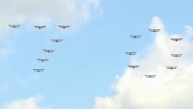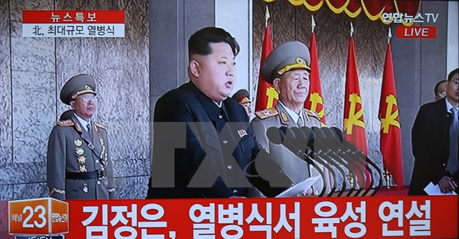 Από τη μεγάλη στρατιωτική παρέλαση της Πιονγιάνγκ δεν θα μπορούσε φυσικά να απουσιάσει ο ηγέτης της χώρας Κιμ Γιονγκ Ουν, ο οποίος στην ομιλία του κατέστησε γι’ άλλη μια φορά σαφές ότι η χώρα του είναι έτοιμη να αντιμετωπίσει τις ΗΠΑ και τη Νότια Κορέα σε ενδεχόμενο πόλεμο. Άρματα μάχης και χιλιάδες στρατιώτες, πολλοί κρατώντας κόκκινες σημαίες, περνούσαν εκείνη την ώρα από μπροστά του, ενώ πολεμικά αεροσκάφη σχημάτιζαν τον αριθμό 70 στον ουρανό.