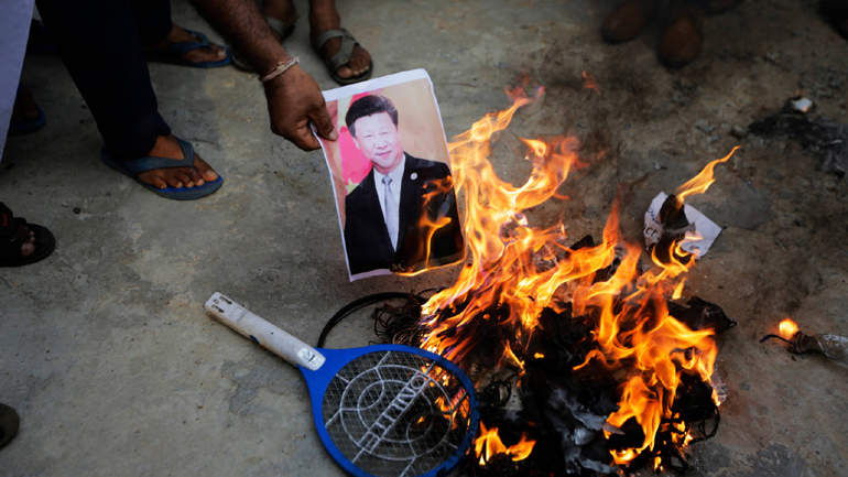 Σε διάφορες πόλεις της Ινδίας έγιναν διαδηλώσεις με συνθήματα κατά της Κίνας, ενώ έκαψαν και φωτογραφίες του Κινέζου πρωθυπουργού Σι Τζινπίνγκ.