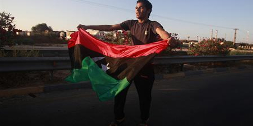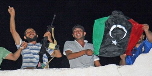 Κρατώντας όπλα και πυροβολώντας εναντίον πορτραίτων του Μουάμαρ Καντάφι, οι εξεγερμένοι φώναζαν συνθήματα όπως «ο Θεός είναι μεγάλος» και «Έφθασε το τέλος του Καντάφι». Επιπλέον, αρκετοί ήταν αυτοί που κατέβασαν τις σημαίες του καθεστώτος, υψώνοντας στη θέση τους αυτές του Εθνικού Μεταβατικού Συμβουλίου.
