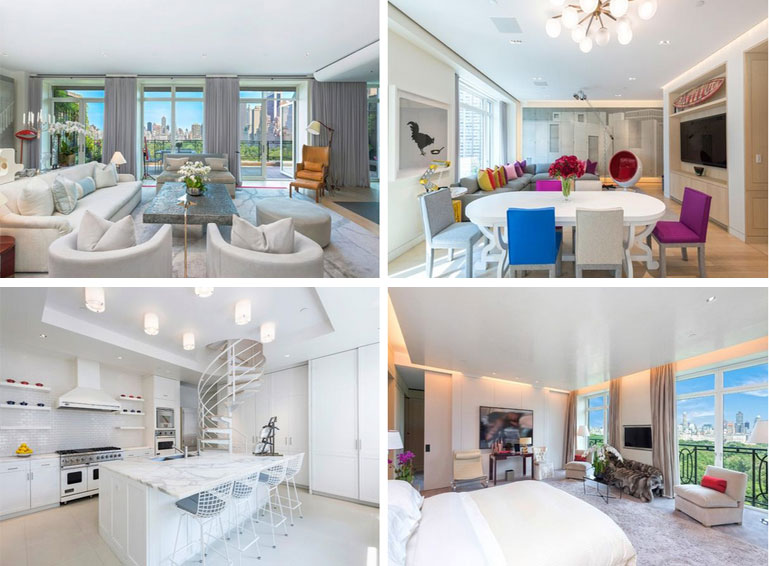 Το διώροφο ρετιρέ έχει τρία υπνοδωμάτια με πέντε μπάνια, διαθέτει μια κύρια σουίτα με δύο dressing room και δύο μπάνια, το ένα εκ των οποίων, από την μπανιέρα, έχει θέα στο Σέντραλ Παρκ.