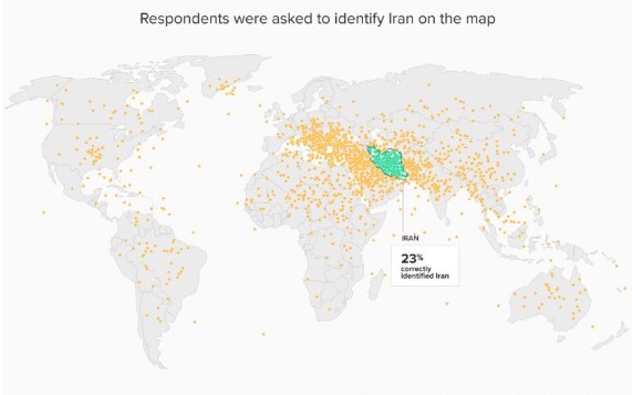 Είναι χαρακτηριστικό, ότι λιγότεροι από τρεις στους δέκα μπόρεσαν να προσδιορίσουν σε ποιο σημείο του χάρτη βρίσκεται η Ισλαμική Δημοκρατία.