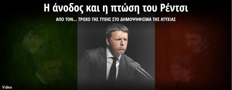 «Η νίκη έχει πολλούς πατέρες. Η ήττα είναι ορφανή». Ξεκινώντας από αυτήν την κλασική πολιτική ρήση, η «Süddeutsche Zeitung» εκτιμά ότι στην περίπτωση του ιταλικού δημοψηφίσματος η ήττα έχει πρόσωπο και όνομα, και αυτό δεν είναι άλλο από τον πρωθυπουργό Ματέο Ρέντσι, «που έσπευσε αμέσως να αναλάβει την πατρότητα του καταστροφικού δημοψηφίσματος και μέσω της παραίτησής του να μην αποποιηθεί τις συνέπειες».
