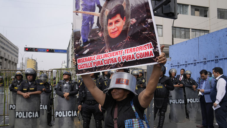 Ο Πέδρο Καστίγιο παύθηκε από το αξίωμα του προέδρου του Περού έπειτα από μόλις δεκαεπτά μήνες με ψηφοφορία του κοινοβουλίου, προτού συλληφθεί από τις Αρχές, ενώ η αντιπρόεδρός του Ντίνα Μπολουάρτε ορκίστηκε νέα αρχηγός του κράτους έπειτα από μια μέρα με πολλές εντυπωσιακές ανατροπές σε μια χώρα συνηθισμένη στις πολιτικές κρίσεις.