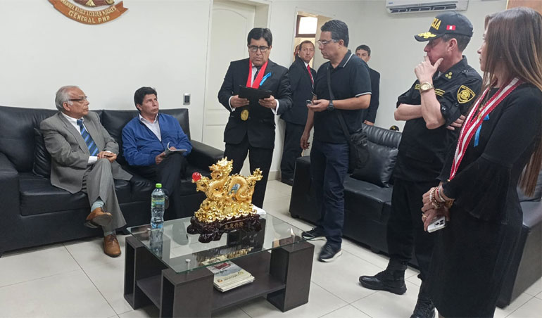 Ο 53χρονος πρώην εκπαιδευτικός και συνδικαλιστής, που ανέλαβε την εξουσία τον Ιούλιο του 2021, έχει «συλληφθεί», δήλωσε στον Τύπο η εισαγγελέας Μαρίτα Μπαρέτο, ενώ το περουβιανό δικαστικό σύστημα έδωσε στη δημοσιότητα φωτογραφίες με τον —πρώην, πλέον— αρχηγό του κράτους καθισμένο σε καρέκλα, έχοντας γύρω του εισαγγελικούς λειτουργούς και αστυνομικούς.