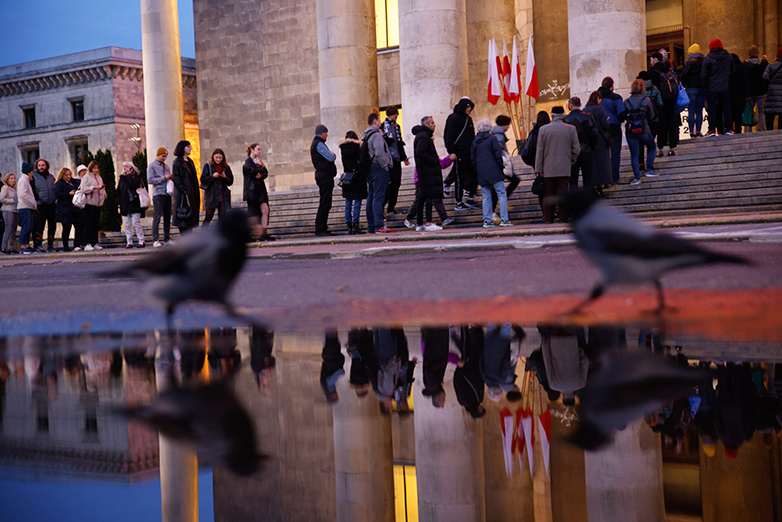 Κανάλια μετέδωσαν εικόνες από αρκετές εκατοντάδες ανθρώπους, κυρίως νέους, να περιμένουν σε μια μεγάλη ουρά για να ψηφίσουν σε εκλογικό κέντρο στη δυτική πόλη Βρόκλαβ. Οι κάτοικοι προσέφεραν σε όσους περίμεναν ζεστό τσάι και κουβέρτες, αλλά και φαγητό, καθώς κάποιοι δήλωσαν ότι ανέμεναν στην ουρά έξι ώρες. Το εκλογικό κέντρο έκλεισε λίγο πριν τις 3 τα ξημερώματα (04:00 ώρα Ελλάδας), έξι ώρες μετά την επίσημη ώρα που θα έκλειναν οι κάλπες.