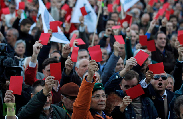 Χιλιάδες στελέχη του στρατού, ενεργά και εν αποστρατεία, πραγματοποίησαν πορεία διαμαρτυρίας το Σάββατο στην πρωτεύουσα της Πορτογαλίας, διαμαρτυρόμενα για την πρόθεση της κυβέρνησης να βάλει «χέρι» στους μισθούς και τις συντάξεις τους μέσα στο 2013 στο πλαίσιο εφαρμογής ενός πακέτου σκληρής λιτότητας.