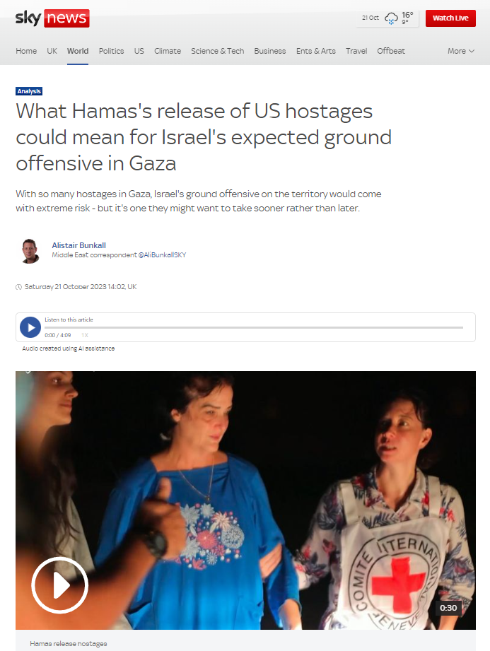 Ενδεικτική η ανάλυση του ανταποκριτή του Sky News στη Μέση Ανατολή Αλιστάρ Μπουνκάλ ο οποίος τονίζει ότι «παρ’ όλα τα καλά νέα της χθεσινής νύχτας, αυτή παραμένει η μεγαλύτερη κρίση ομηρίας στην ιστορία του Ισραήλ» θυμίζοντας ότι 200 όμηροι εξακολουθούν να κρατούνται.