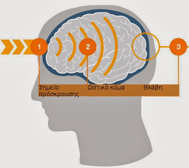 Στο γράφημα που δημοσίευσε το BBC φαίνεται πως επηρεάζεται ο εγκέφαλος από το χτύπημα.
