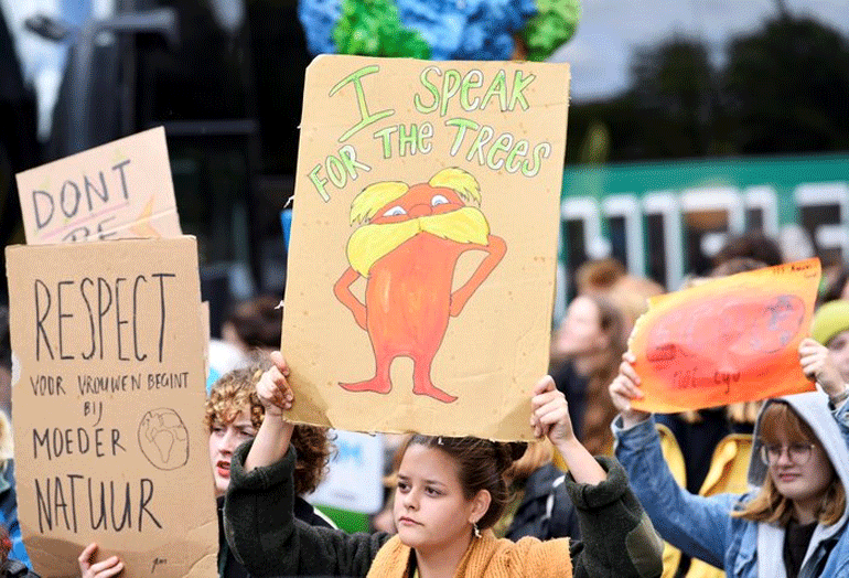 Μεταξύ των διαδηλωτών, χιλιάδες παιδιά που άφησαν τα μαθήματά τους για να συμμετάσχουν στην κινητοποίηση και να θέσουν με τη σειρά τους στους κυβερνώντες το ερώτημα «Πώς τολμάτε;», αντλώντας έμπνευση από την ομιλία της έφηβης ακτιβίστριας από τη Σουηδία Γκρέτα Τούνμπεργκ στα Ηνωμένα Έθνη.