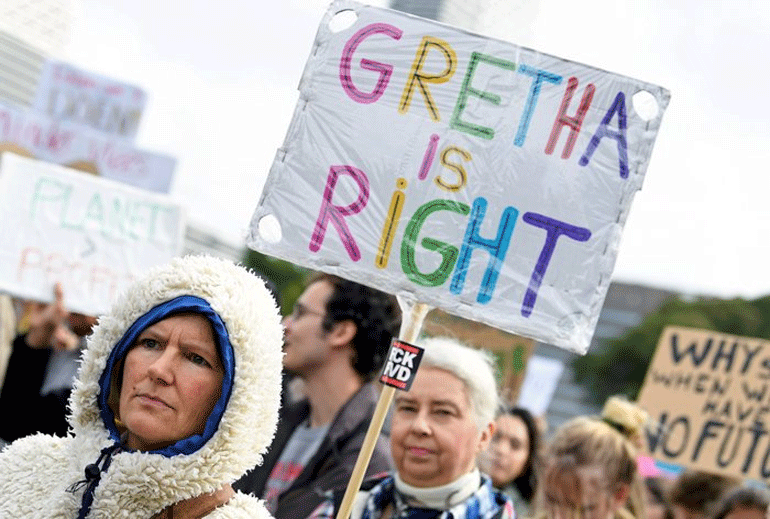 Παίζοντας ντραμς και κρατώντας φωτογραφίες της Τούνμπεργκ, οι διαδηλωτές διέσχισαν το κέντρο της πόλης με πλακάτ όπου αναγράφονταν συνθήματα όπως: «Για το καλό της Γκρέτα» ή «Εσείς θα πεθάνετε από τα γηρατειά, εμείς θα πεθάνουμε από την κλιματική αλλαγή».