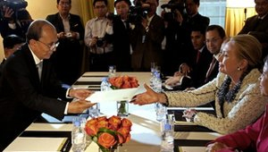 Όπως μετέδωσε το Γαλλικό Πρακτορείο, η Hillary Clinton συναντήθηκε με τον Thein Sein στο περιθώριο της Γενικής Συνέλευσης του Ο.Η.Ε., όπου του ξεκαθάρισε ότι οι Η.Π.Α. είναι διατεθειμένες να κάνουν ό, τι χρειαστεί προκειμένου να περιοριστεί σημαντικά η μακρόχρονη απαγόρευση εισαγωγής προϊόντων από τη χώρα της νοτιοανατολικής Ασίας στις αγορές των Η.Π.Α.. Η Μιανμάρ βρισκόταν για δεκαετίες σε διεθνή απομόνωση λόγω του στρατιωτικού καθεστώτος που διοικούσε τη χώρα, ωστόσο εδώ και σχεδόν δύο χρόνια έχει προχωρήσει σε σειρά σημαντικών μεταρρυθμίσεων για την προάσπιση των ατομικών ελευθεριών και την αναδιάρθρωση της Δημόσιας Διοίκησης.
