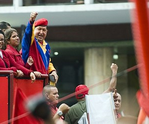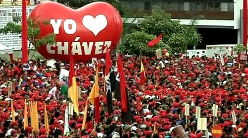 Παρουσία χιλιάδων υποστηρικτών του, οι οποίοι ήταν ντυμένοι στα χρώματα του κυβερνώντος κόμματος, ο 57χρονος ηγέτης της λατινοαμερικανικής χώρας εμφανίστηκε στην οροφή ενός φορτηγού, σφίγγοντας τις γροθιές του. Φανερά ευδιάθετος και σε καλή σωματική κατάσταση προσπάθησε με τη δυναμική του εμφάνιση να διαψεύσει τις φήμες που τον θέλουν να μην έχει αίσιο τέλος η περιπέτειά του με τον καρκίνο. Χορεύοντας και τραγουδώντας, ο Hugo Chavez έστειλε με τον δικό του μοναδικό τρόπο ένα μήνυμα αισιοδοξίας στους ψηφοφόρους του, που είχαν γεμίσει ασφυκτικά το κέντρο της πρωτεύουσας, Καράκας.