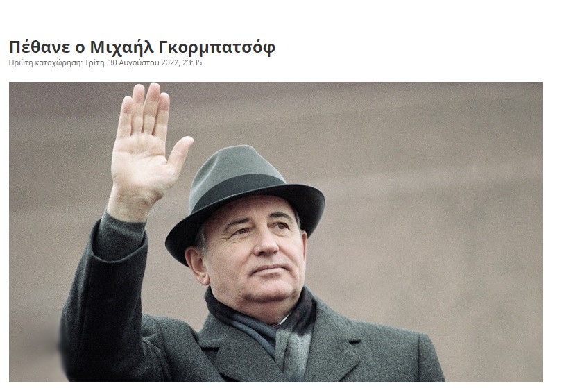 Χαρακτηρίστηκε ως «μια από τις μεγαλύτερες προσωπικότητες του 20ού αιώνα», κυρίως λόγω της συμβολής του για να τερματιστεί ο ψυχρός πόλεμος και να πέσει το σιδηρούν παραπέτασμα. Η διεθνής πολιτική σκηνή αποχαιρετά τον Μιχαήλ Γκορμπατσόφ, τον τελευταίο ηγέτη της Σοβιετικής Ένωσης που έφυγε από τη ζωή σε ηλικία 91 ετών.