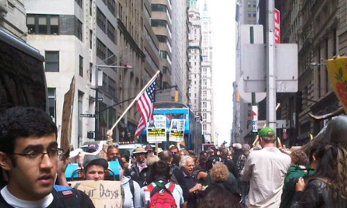 Αρκετές εκατοντάδες διαδηλωτές πραγματοποίησαν πορεία το Σάββατο κοντά στη Wall Street στη Νέα Υόρκη με πρόθεση να «καταλάβουν» την οδό, σύμβολο του παγκόσμιου χρηματοοικονομικού συστήματος, για να διαδηλώσουν εναντίον της απληστίας, της διαφθοράς και της περιστολής των δαπανών στον προϋπολογισμό των ΗΠΑ, αλλά η προσπάθειά τους εμποδίστηκε από τις αρχές.