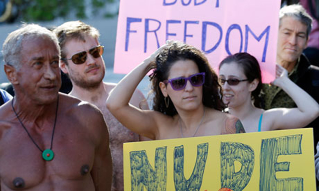 Αρκετοί πάντως αντέδρασαν στην απόφαση των τοπικών Αρχών, πραγματοποιώντας διαδήλωση στην πόλη… γυμνοί.