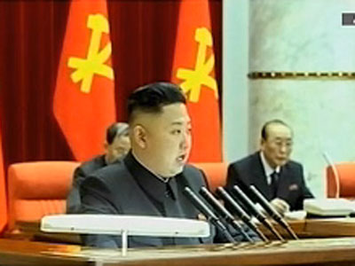 Στη διάρκεια ομιλίας του, η οποία και μεταδόθηκε από την κρατική τηλεόραση, ο γιος του εκπλιπόντα Kim Jong-il εξήγησε πως η χώρα του βρίσκεται στα πρόθυρα πολέμου και κατηγόρησε τις Η.Π.Α. ότι επιθυμούν να ανατρέψουν το καθεστώς και να προχωρήσουν στον πυρηνικό αφοπλισμό της. Παράλληλα, φρόντισε να εκφράσει την έντονη δυσαρέσκειά του για τις κοινές στρατιωτικές ασκήσεις με τη Ν. Κορέα στη διάρκεια των οποίων θα υπάρχει συμμετοχή και βομβαρδιστικών «F-22 Stealth».