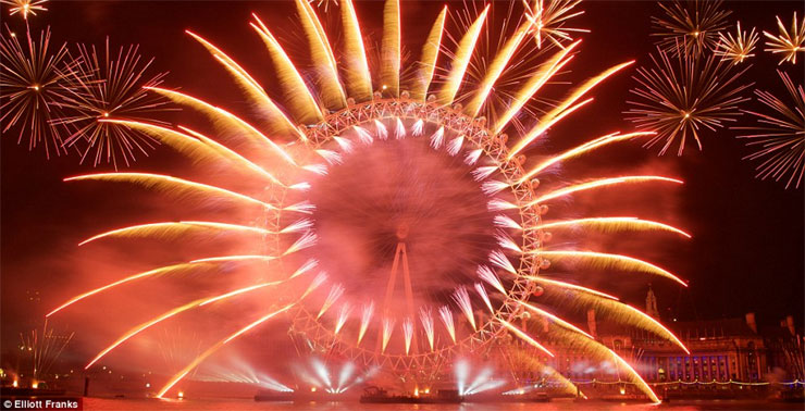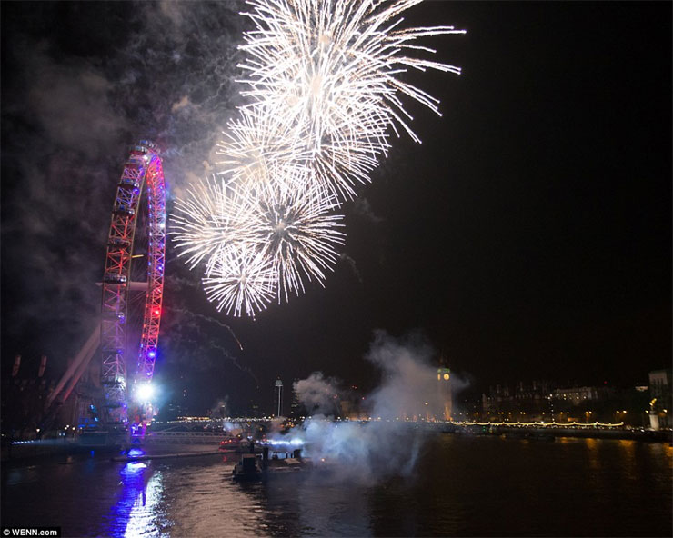 Στο Λονδίνο η νύχτα έγινε… μέρα από τα εντυπωσιακά πυροτεχνήματα, τα οποία φώτισαν τον ουρανό πάνω από τον Τάμεση και το σήμα κατατεθέν της βρετανικής πρωτεύουσας, το Big Ben. Περίπου 12.000 πυροτεχνήματα, βάρους 15 τόνων, αποτέλεσαν το «κερασάκι» στους λαμπρούς εορτασμούς.