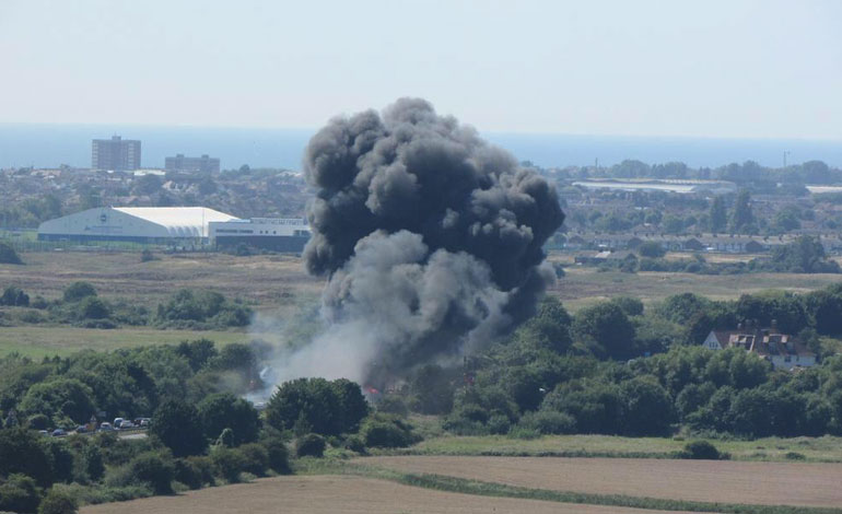 Κι αυτό είναι το δεύτερο δυστύχημα που σημειώνεται στις εκδηλώσεις Αεροπορικών Επιδείξεων που πραγματοποιούνται ετησίως στο αεροδρόμιο Shoreham, τα τελευταία χρόνια.