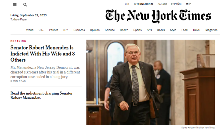 A press event will be held today at 11:00 a.m. to announce the unsealing of an indictment charging Robert Menendez, U.S. Senator from New Jersey, and his wife, Nadine Menendez, with bribery offenses in connection with their corrupt relationship with three New Jersey businessmen. pic.twitter.com/CLTXnU0mAm