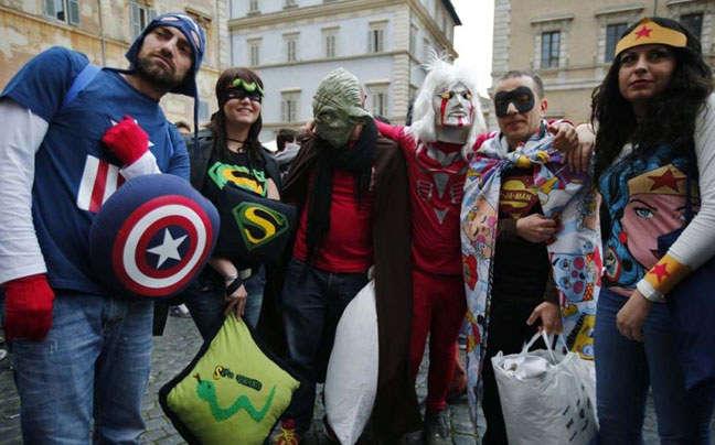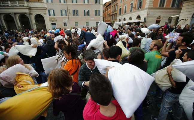 Χιλιάδες Ιταλοί αλλά και τουρίστες, με το σύνθημα «βγάλε από μέσα σου τον σούπερ ήρωα» έπαιξαν… μαξιλαροπόλεμο!