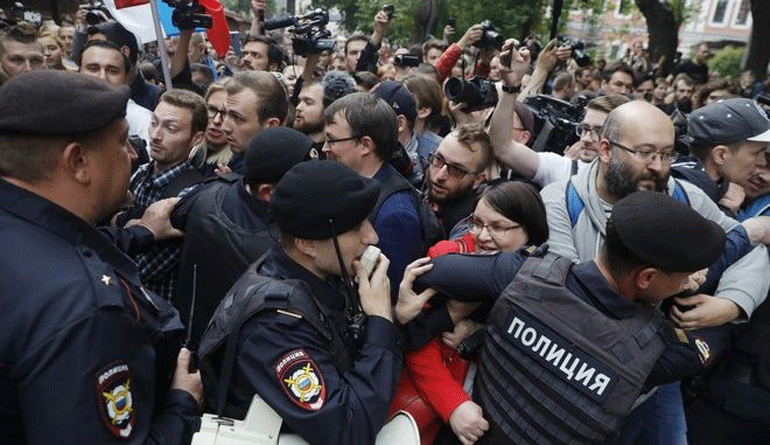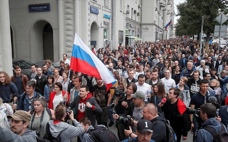 Χθες πάντως δεκάδες αντιπολιτευόμενοι Ρώσοι συνελήφθησαν από την αστυνομία στη Μόσχα, κατά τη διάρκεια διαδήλωσης διαμαρτυρίας εναντίον του αποκλεισμού ανεξαρτήτων υποψηφίων από τις τοπικές εκλογές του Σεπτεμβρίου.