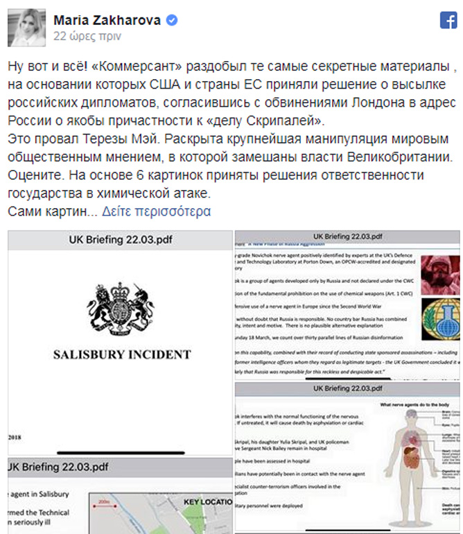 Η ρωσική εφημερίδα Kommersant δημοσίευσε στον ιστότοπο της τη βρετανική έκθεση για την υπόθεση Σκριπάλ, που παρουσίασε η βρετανική πρεσβεία ενώπιον ξένων πρέσβεων σε κλειστού χαρακτήρα ενημέρωση, στις 22 Μαρτίου.