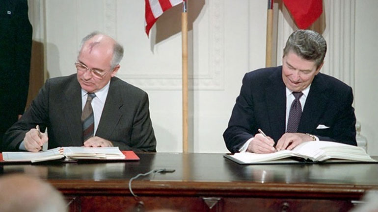 8η Δεκεμβρίου: Υπογραφή της συνθήκης INF για την εξάλειψη των βαλλιστικών πυραύλων μέσου βεληνεκούς στην Ουάσινγκτον, κατά τη διάρκεια της τρίτης συνόδου κορυφής του Ρόναλντ Ρέιγκαν και του Μιχαήλ Γκορμπατσόφ.