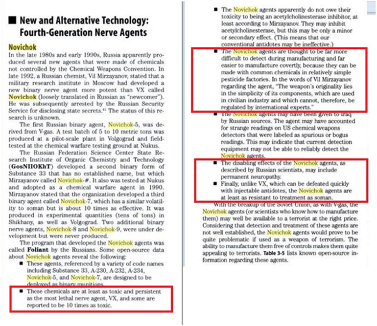 Ένας άλλος επιστήμονας στα ίδια εργαστήρια, ο χημικός αναλυτής Vil Mirzayanov που είχε επισημάνει τις διαρροές τη δεκαετία του 1990 «είχε σφυρίξει» όσα γνώριζε στους Αμερικανούς, όταν το 1996 του είχε επιτραπεί να πάει στις ΗΠΑ.