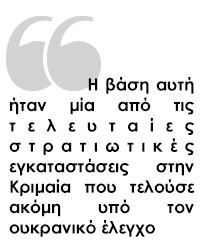 Η βάση, πάνω στην οποία μέχρι πριν λίγο κυμάτιζε η ουκρανική σημαία με το γαλάζιο και κίτρινο χρώμα, είναι μία από τις λίγες στρατιωτικές εγκαταστάσεις στην Κριμαία που εξακολουθεί να βρίσκεται υπό τον ουκρανικό έλεγχο μετά την ένωση της χερσονήσου με τη Ρωσία.