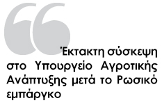 Mετά την είδηση του εμπάργκο,νωρίς το βράδυ της Τετάρτης συγκλήθηκε έκτακτη σύσκεψη στο Υπουργείο Αγροτικής Ανάπτυξης.