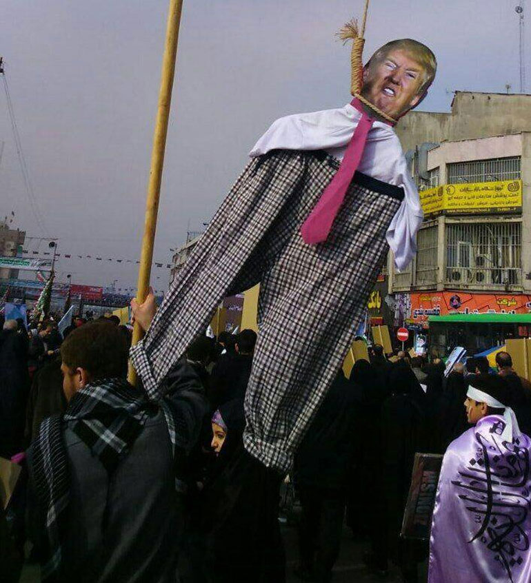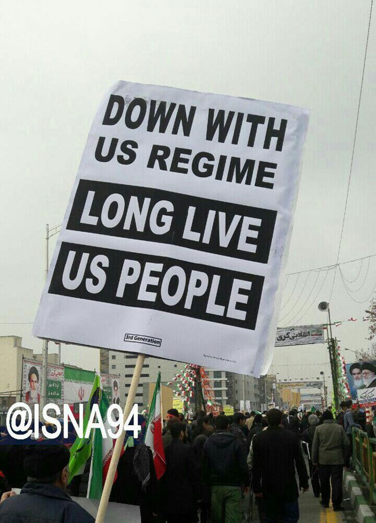 Την ίδια ώρα, χιλιάδες Ιρανοί διαδηλώνουν σε όλη τη χώρα, σε μια ένδειξη ισχύος απέναντι στην εχθρική πολιτική του Τραμπ. Κρατώντας πανό που έγραφαν «Θάνατος στην Αμερική», πορτρέτα του Αμερικανού προέδρου, του Ισραηλινού πρωθυπουργού Μπενιαμίν Νετανιάχου και της Βρετανίδας πρωθυπουργού Τερέζα Μέι, καθώς και αμερικανικές σημαίες, εκατοντάδες χιλιάδες άνθρωποι κατευθύνθηκαν προς την πλατεία Αζαντί.