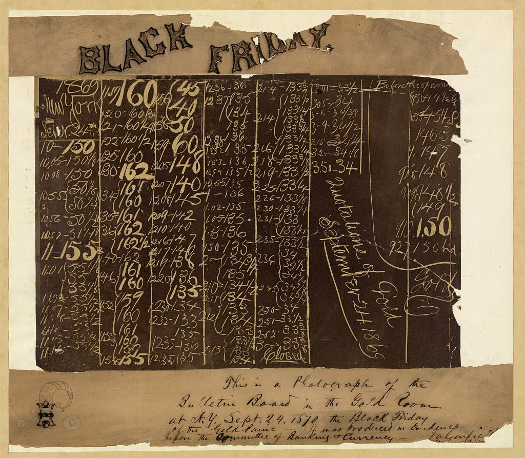 1869, σαν σήμερα, 24 Σεπτεμβρίου: «Μαύρη Παρασκευή» στις ΗΠΑ, μία από τις χειρότερες μέρες στην ιστορία του αμερικανικού χρηματιστηρίου. O Jay Gould και ο James Fisk επιχειρούν να ελέγξουν την αγορά χρυσού, η κυβέρνηση την απελευθερώνει και ακολουθεί πανικός στη Wall Street, με κατακόρυφη πτώση στην τιμή του χρυσού.