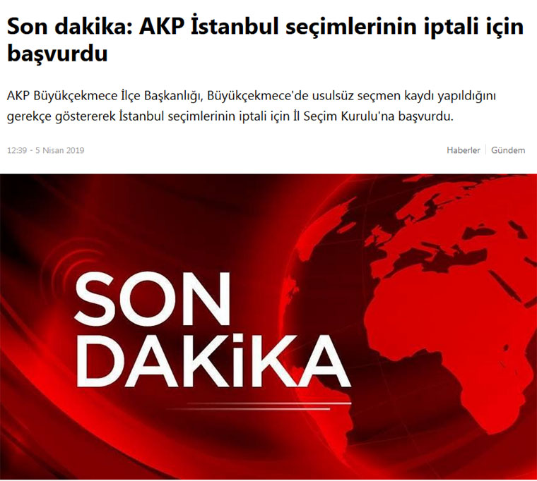 Η εξέλιξη αυτή καταδεικνύει πως ο Ταγίπ Ερντογάν δεν δέχεται με τίποτα την ήττα του κόμματός του στον μεγαλύτερο μητροπολιτικό δήμο της χώρας, αλλά και πως δεν έχει καμία εμπιστοσύνη ότι θα κερδίσει κάτι από τη διαδικασία επανακαταμέτρησης των ψήφων, η οποία έχει ήδη αρχίσει.