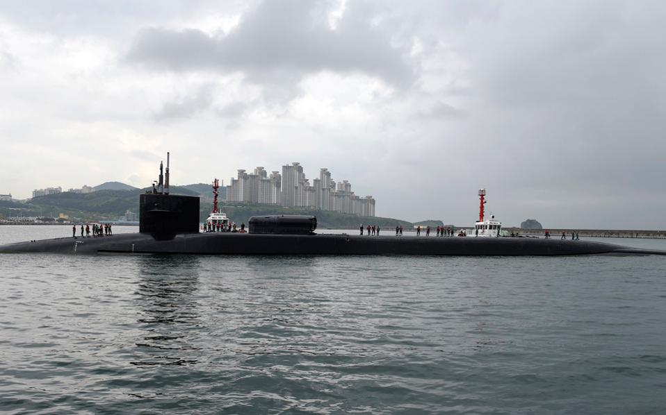 Εν τω μεταξύ, σε λιμάνι της Νότιας Κορέας έφθασε την Τρίτη ένα αμερικανικό πυρηνοκίνητο υποβρύχιο, στο πλαίσιο υλοποίησης τακτικής επίδειξης αμυντικής ισχύος από τις ΗΠΑ και τη Ν. Κορέα.