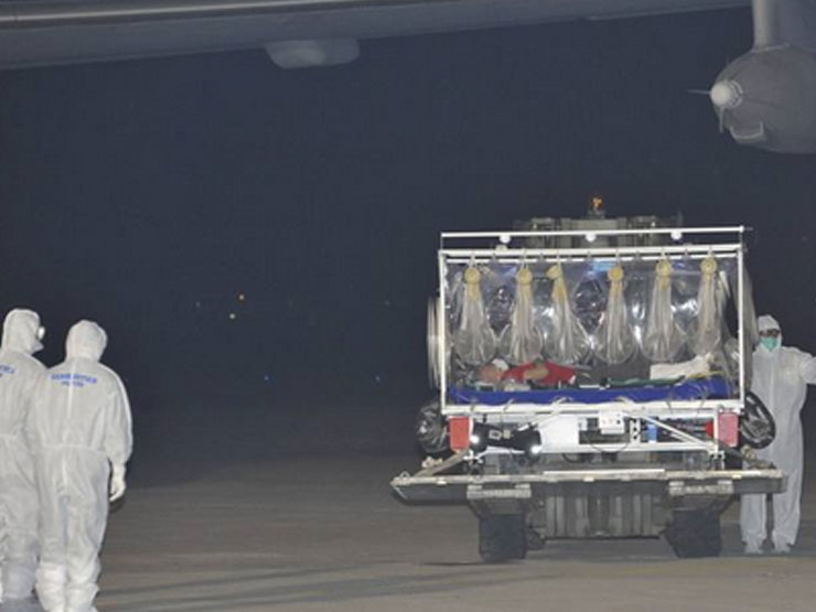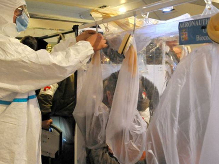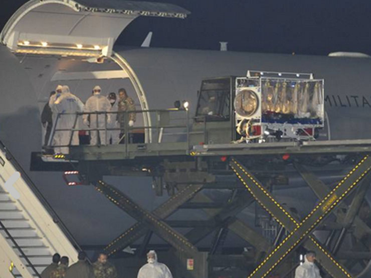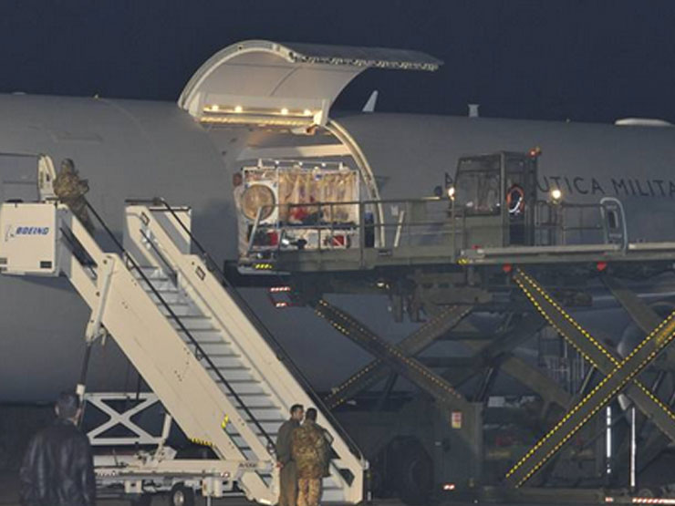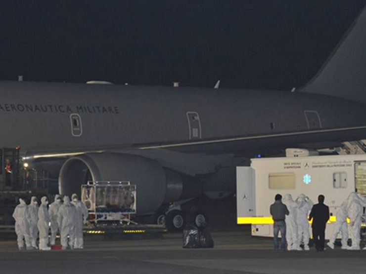 Ο γιατρός, ο οποίος είναι ο πρώτος Ιταλός που προσβάλλεται από τον Έμπολα, έφθασε στο στρατιωτικό αεροδρόμιο της Πράτικα ντι Μάρε, 30 χλμ. νοτίως της Ρώμης, σε φορείο ερμητικά κλειστό με στρατιωτικό αεροσκάφος που είχε ναυλωθεί για τον σκοπό αυτόν.