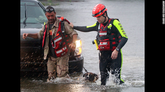 Σωστικά συνεργεία προσέγγισαν με βάρκες κατοικίες σε αγροτικές περιοχές της Λουιζιάνα, προκειμένου να απομακρύνουν με ασφάλεια κατοίκους και ζώα, που είχαν παγιδευτεί από τα ορμητικά νερά.